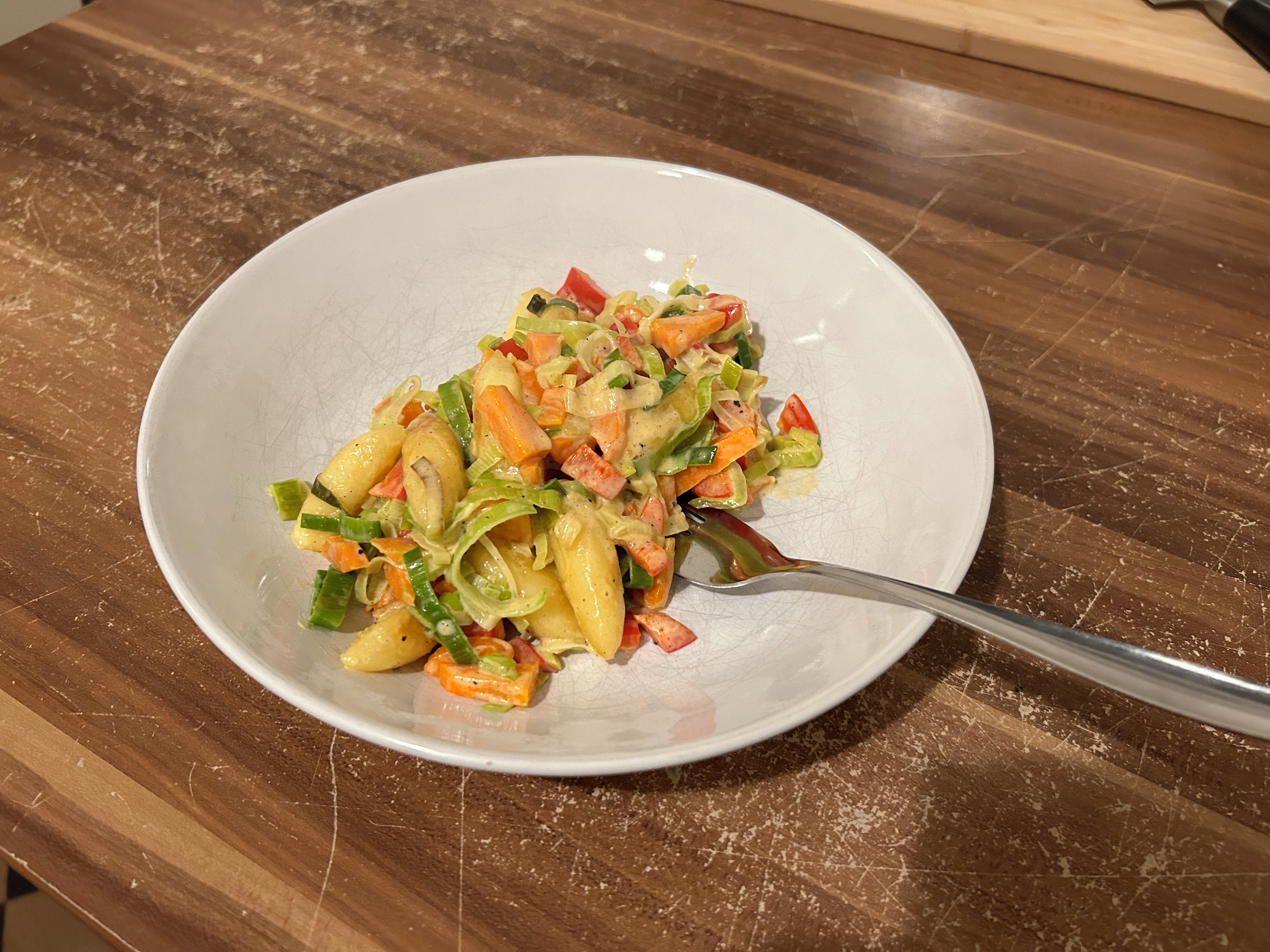 Knoblauchzehe, Zwiebel und Ingwer in den Mixtopf geben und für 5 Sek. bei Stufe 5 zerkleinern. Butter und Olivenöl hinzugeben und 3 Min. bei Stufe 2 und 100 °C andünsten. Maronen, Möhre, Lauch und Sellerie in den Mixtopf geben und für 15 Sek. bei Stufe 4 zerkleinern. Gemüsebrühe und Weißwein hinzugeben und 20 Min. bei Stufe 1 und 100 °C kochen. Sahne, Milch, Honig, Salz und Gewürze hinzugeben und 40 Sek. auf Stufe 10 pürieren. Suppe servieren und nach belieben mit Sahne garnieren.